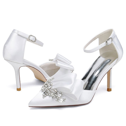 Women's Silk Satin With Ankle Strap Closed Toe Stiletto Heel Evening Shoes
