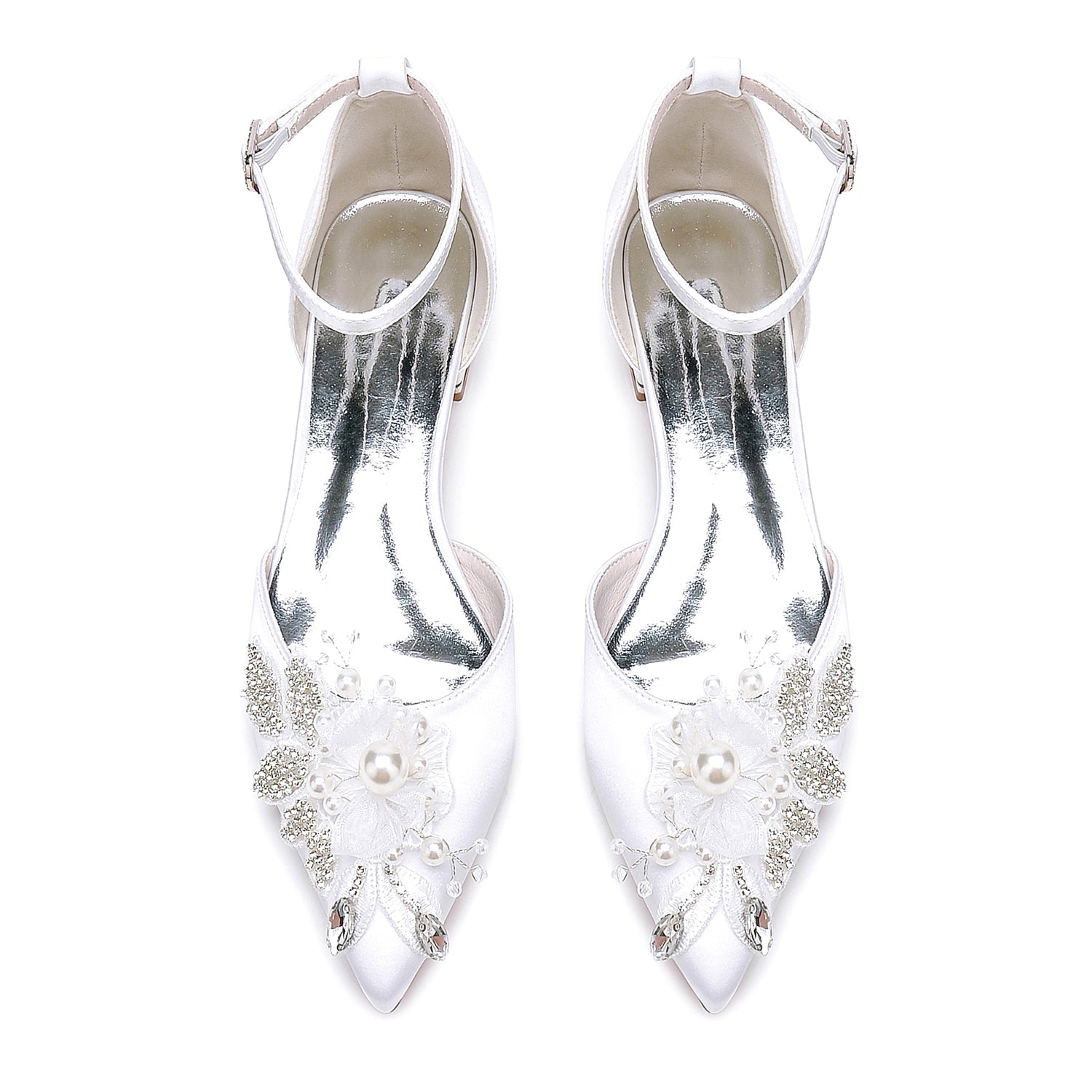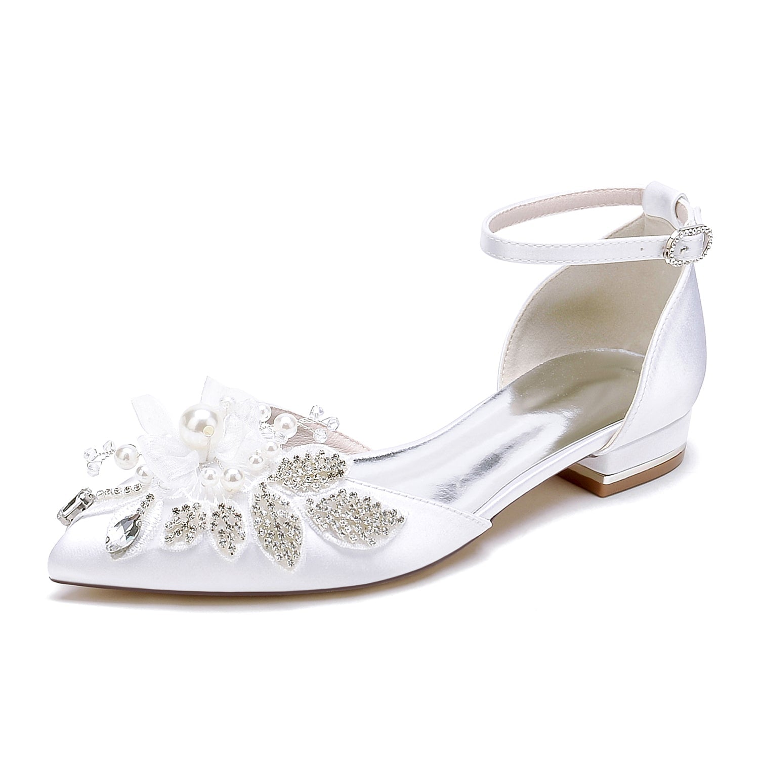 Women's Silk Satin With Ankle Strap Flower Rhinestone Closed Toe Flat Heel Evening Shoes