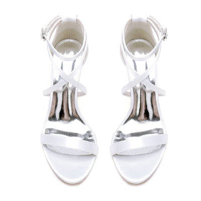 Women's Silk Satin With Ankle Strap Peep Toe Chunky Heel Wedding Shoes
