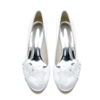 Women's Silk Satin With Flower Closed Toe Spool Heel Evening Shoes