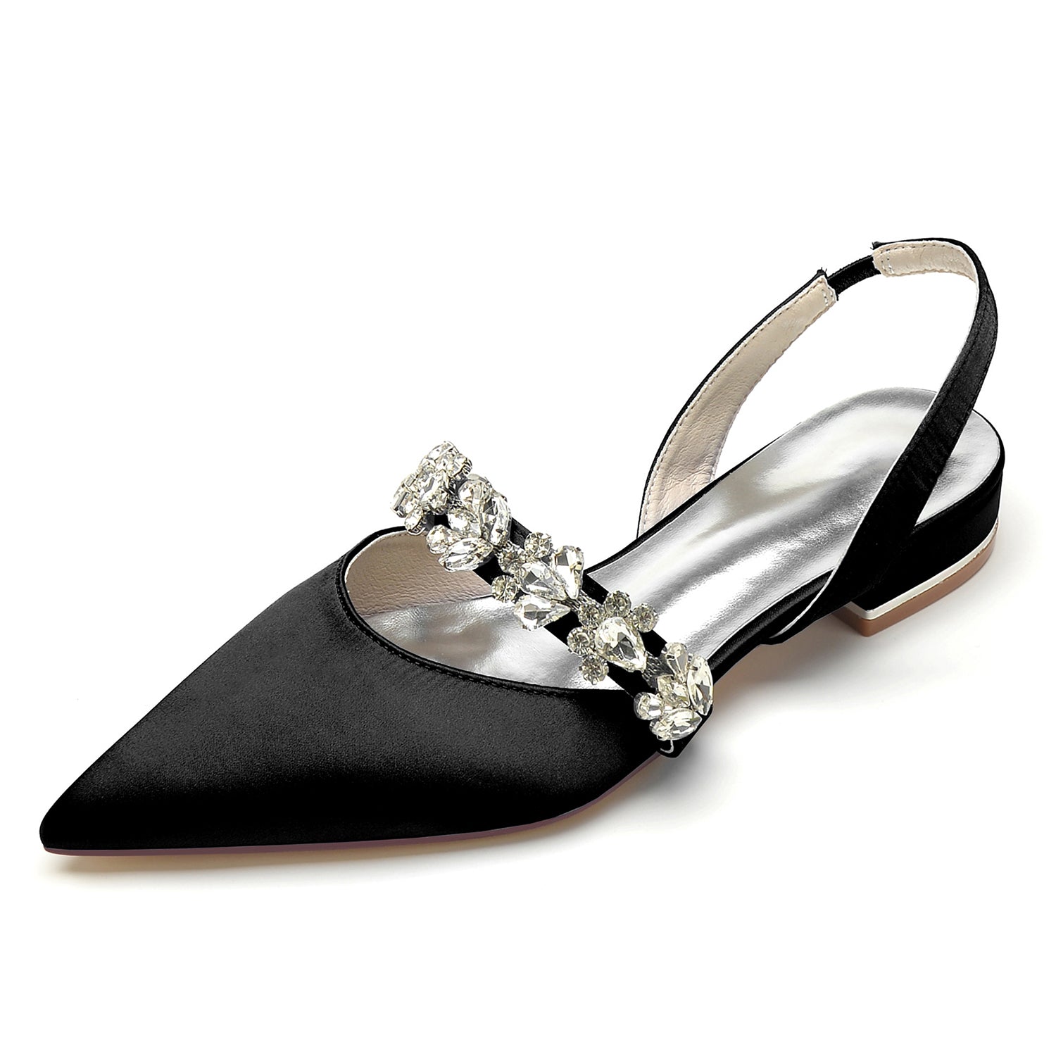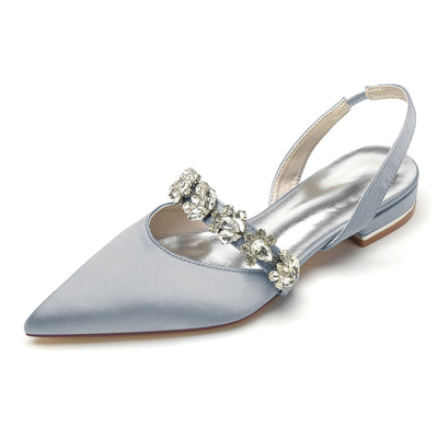 Women's Silk Satin With Rhinestone Closed Toe Flat Heel Evening Shoes