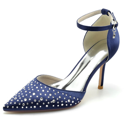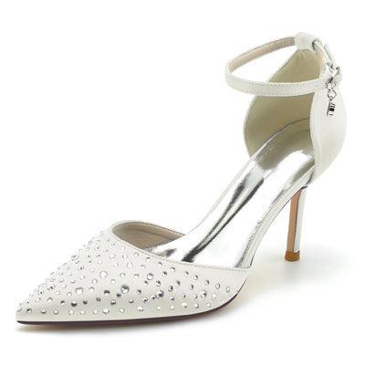 Women's Silk Satin With Rhinestone Closed Toe Stiletto Heel Ankle Strap Wedding Shoes
